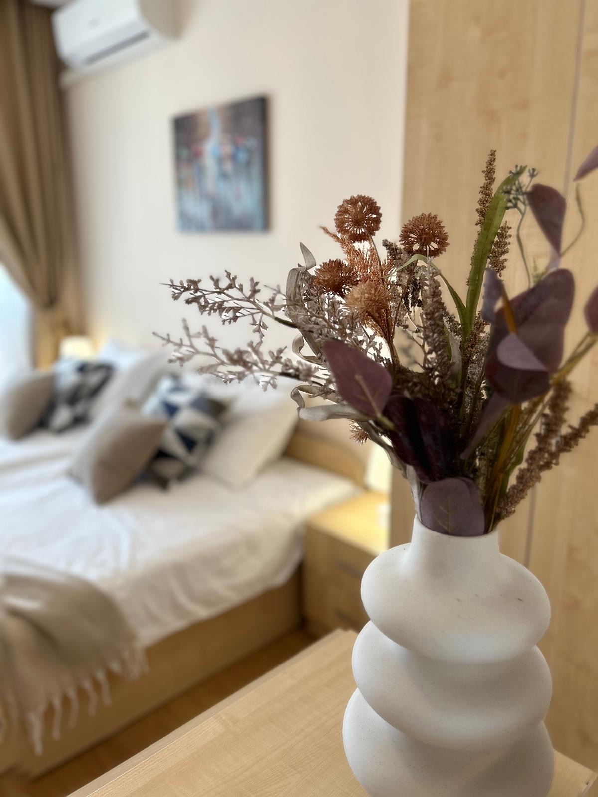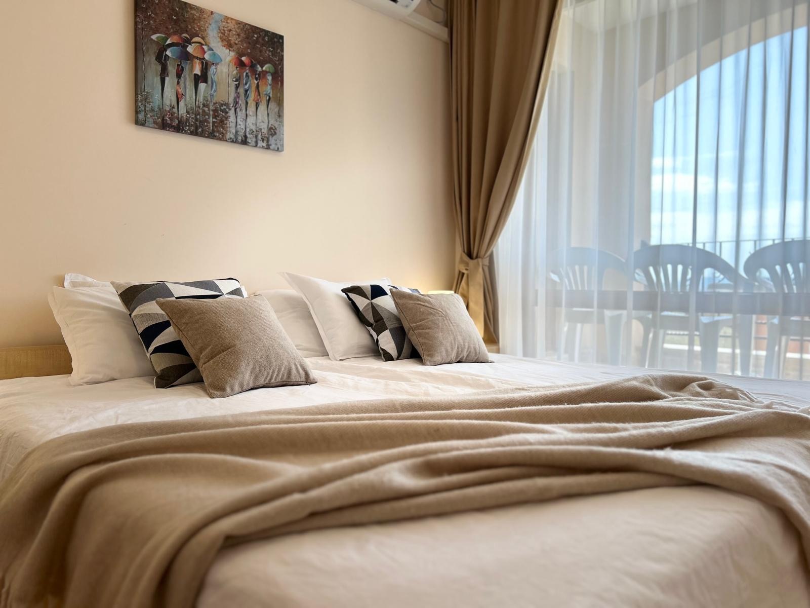 Inside the apartment you will find air conditioning, a washing machine, a cooktop, an electric kettle, pots and pans, a full set of dishes, a flat-screen smart TV, windows overlooking the pools and the sea, and unlimited free Wi-Fi.