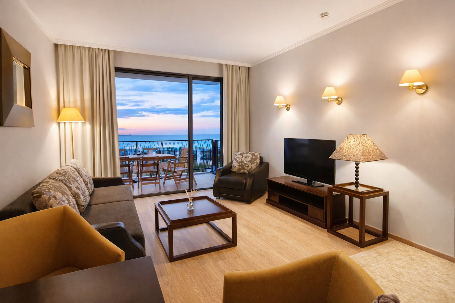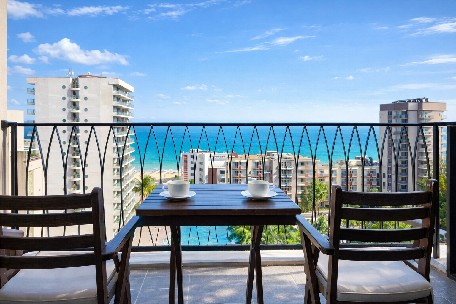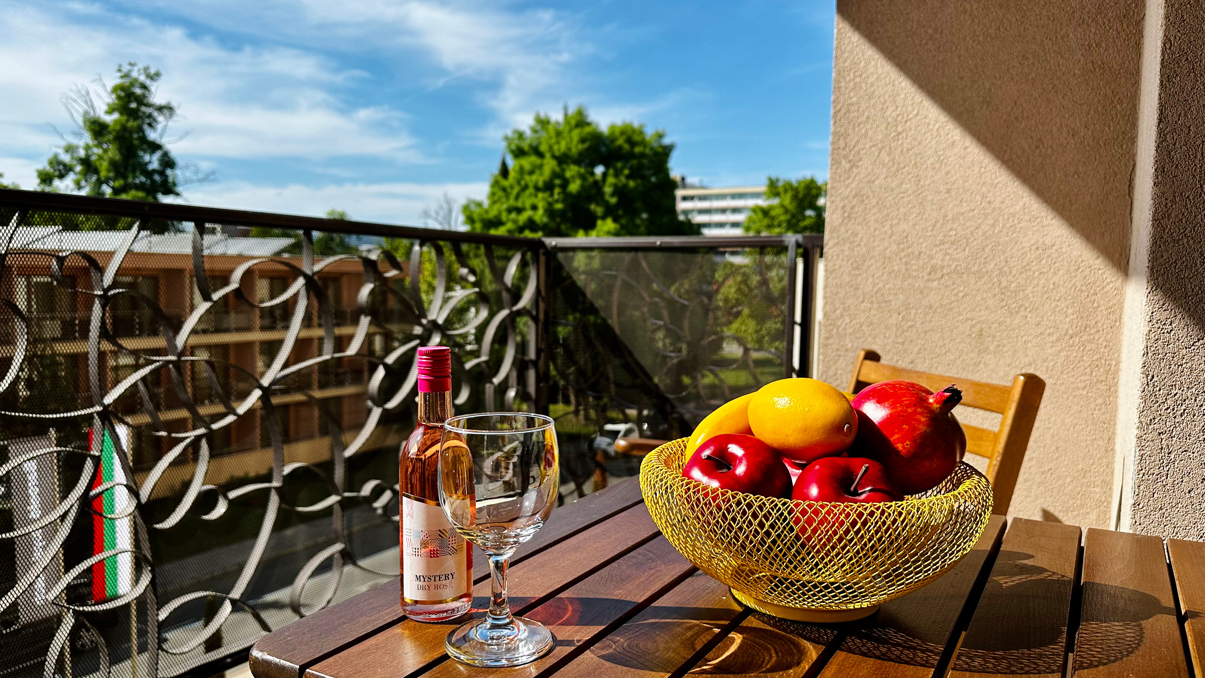 W apartamencie G210 znajduje się klimatyzacja, piekarnik, płyta kuchenna, czajnik elektryczny, ekspres kapsułkowy Dolce Gusto, płaski smart telewizor, przestronne okna, komfortowy balkon z widokiem na baseny i bezpłatne prywatne WIFI.